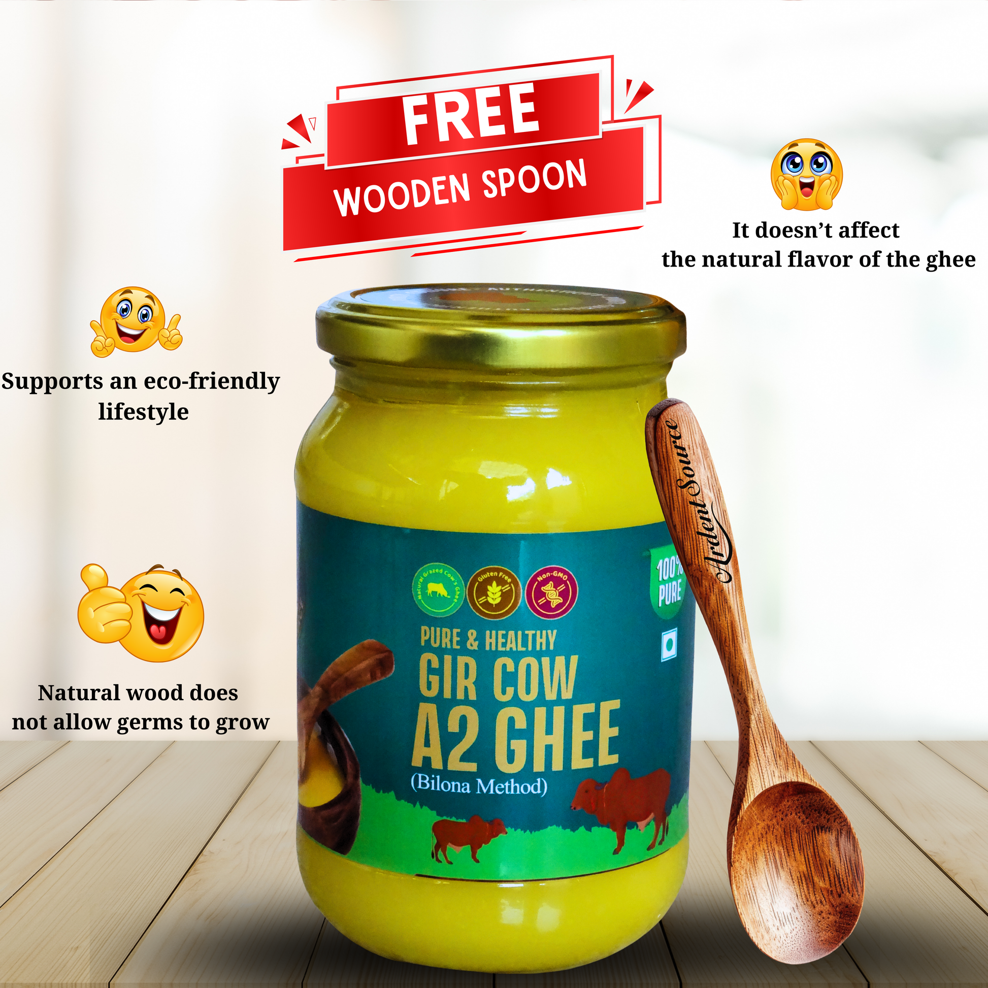 Made from A2 milk of grass-fed Gir cows, with no preservatives, no artificial ingredients, and no chemicals. -